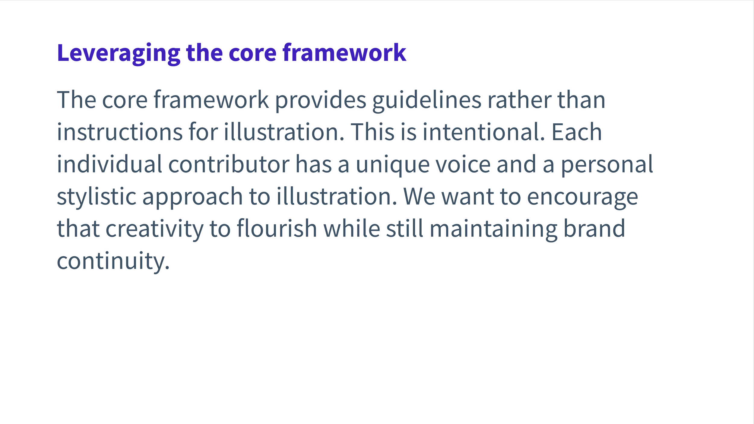 The first step in applying new brand direction was providing the Design team with clear illustration guidelines. I collaborated with the Design Director to write guidelines that provided the flexibility to create unique illustrations while still adhering to specific design parameters.